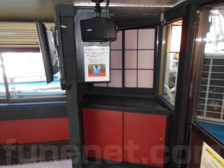 大きな(60人乗り)船内には色々なところに気遣いを感じる箇所が存在する艇体です。