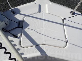〇特徴のあるスクエアバウは、バウデッキのフィッシングスペースを大きく広げている事で、安心してスタンディングでのフィッシングも楽しめますし、またバウロッカーの収納スペースも十分あります。ハッチ内には、アンカーとアンカーロープが収納してあります。