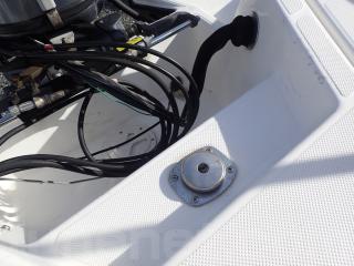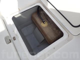 〇デッキ後部のハッチには、オプション装備のFRP製の燃料タンク100Lが装備されています。