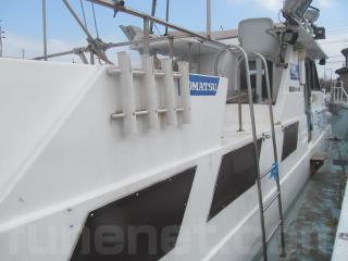 現在も遊漁船として活躍中の船です。16.4mの長さと3.60m位のワイドな横幅ですので、安定した静止性が自慢の船です。ロングキャビンですから居住性もありますので、瀬渡し船や遊漁船にはもってこいの船です。