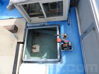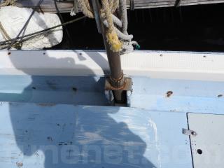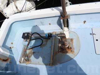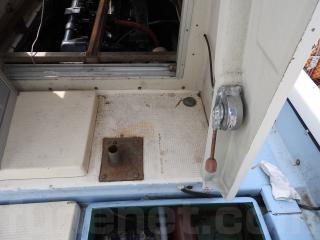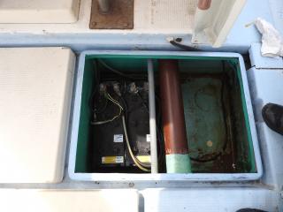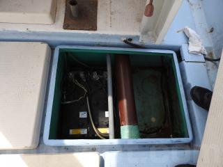 ◆アフトデッキ右舷後方に油圧ラットのシリンダーを設置しています、FRPのカバーを取り付けています、錆びも少なく良好です。