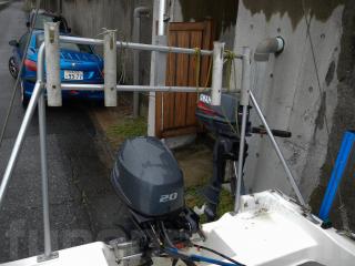 当初、船外機はトーハツ30馬力を載せていました。その後平成25年12月にヤマハ20馬力(油圧も新品)に載せ替えました。載せ替えには合計約70万円以上かかりました。釣行回数は20回程度なので、船外機の程度は非常に良いです。画像をご参照下さい。