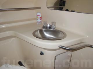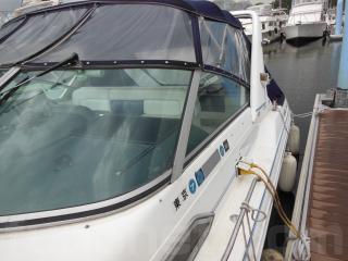 取材時は水上係留保管状態での取材でした。エンジンの始動や走行状態の確認、船底の確認等は一切行っておりません。ご見学の際には、全ての事項をご確認の上、ご購入をお決め頂きますようお願い致します。