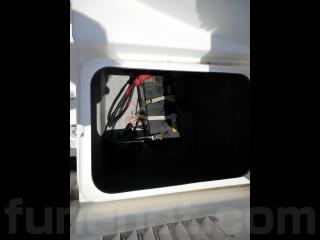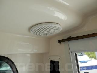 窓枠部分の黒部分にもメタリック塗装されているので光沢も有り綺麗です。更にウエイクタワーもメタリック塗装されておりオーニングも白色生地に赤のストライプがオシャレなイメージに仕上がっています。