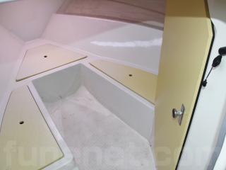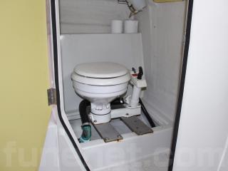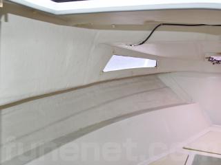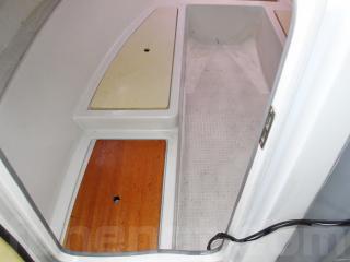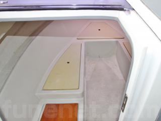 ◆すっぽりと覆われたコクピットに大きいオーニンングが装備されていますので、波しぶきや雨などで濡れたくない方には良いでしょう。また、Vバースもそれなりのスペースがあり、トイレも個室になっていますので、女性の方も安心です。