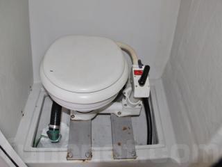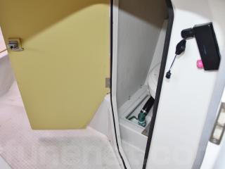 ◆Vバースは天井も高く使い勝手は良さそうです。入ってすぐ右側に個室があり、手動式のマリントイレが備わっています。