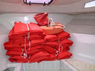 ◆法定備品はライフジャケット定員分、黒玉、救命浮環、赤バケツなどが備わっていました。なお、航行区域を5マイル限定にされているようですので、5マイル以上取得される場合は信号紅炎等の追加装備が必要だと思われます。