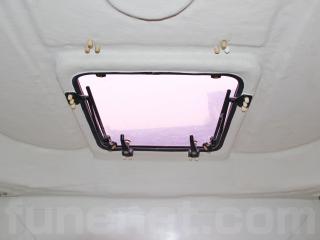 ◆コクピットは広く、キャプテンシートの後ろまでハードトップでしっかり覆われていますので、大型のオーニングと相まって荒天時の航行も濡れる可能性は低いでしょう。