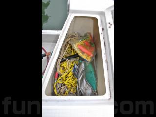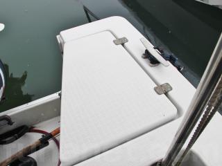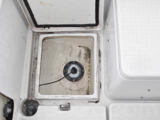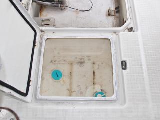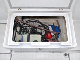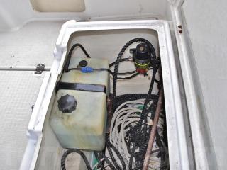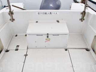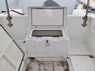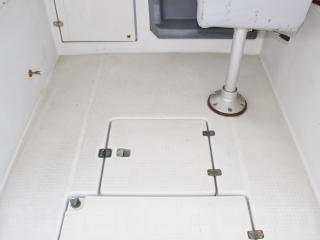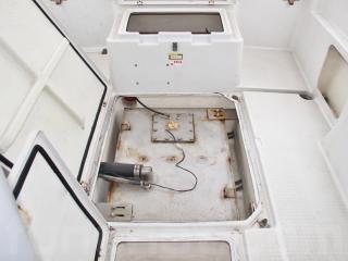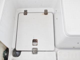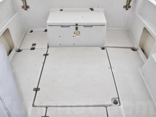 ◆アフトデッキには前から順番にイケス、燃料タンク、オイルタンクと確認ができます。サブタ類もしっかりしています。バッテリーはトランサム左舷のストレージに入っています。