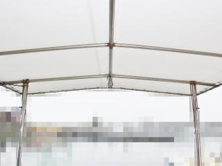 ◆ひときわ大きいオーニングは別注品だと思われますが、骨格はしっかりしていました。アフトデッキで雨に濡れたくない、あるいは炎天下で影が欲しい・・・などの条件を求められる方には嬉しい大きさです。