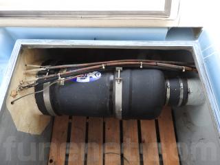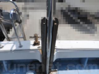 ◆陸上保管です、艫周りの状態は良いようです、アンカーローラーは前後に付いています、電動トイレもアフトデッキの物いれに据付しています、ハッチをあければすぐにトイレとなります。