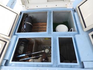 ◆フロントデッキに生けすは2間あります、問題なく使用できそうです、生けすのハッチは4枚有ります真ん中にハッチレールをつけていますレールは取り外し可能です。