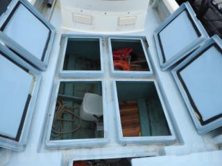 ◆フラットデッキです、フロントデッキは物いれが6間ありますが栓を切れば4間は生けすに改造できます。