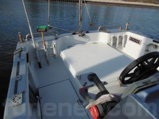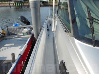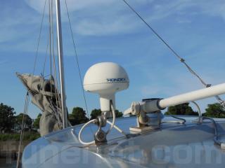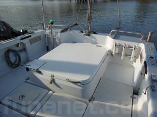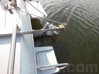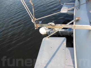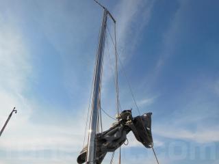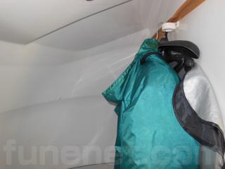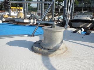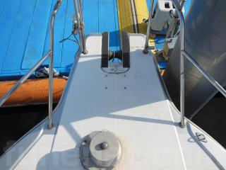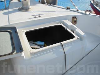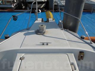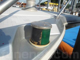 バウデッキにはダガーボードの装備があります。スパンカーと同時に使用することで、とても良い効果があるそうです。この艇のセールスポイントになっています。