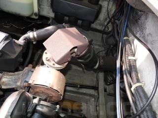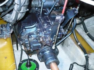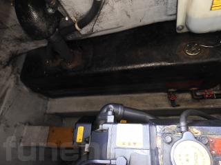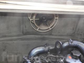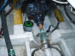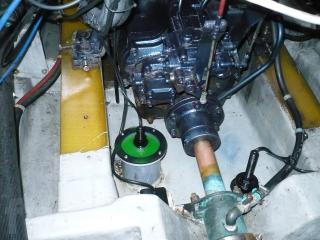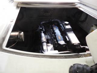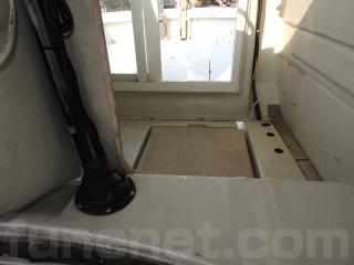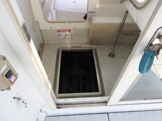 ◆キャビン入り口のハッチをあければ機関場に入れます、スタンチュ-ブの確認が楽です、エンジンの上は敷板をしています、休息及び、物いれに利用出来ます。