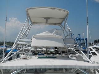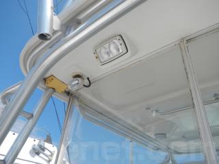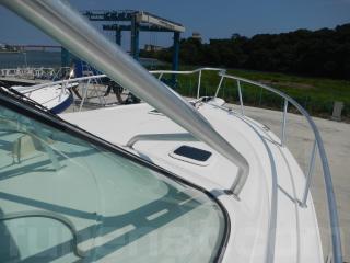 操船席をとりまくなはアルミパイプで、頑丈に仕上げられています。こちらも毎年ガラスコーティングを施しているため、よく見られるアルミの白くなる劣化もありません
