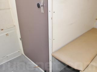◆コクピットから一段下がったところにレストスペースがあり、大人が横になれる程度のクッションがあります。また、トイレは電動式です。レストスペースは明るく、天井高も高い空間です。