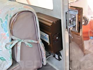 ◆キャプテンシート後ろにDC-DCコンバータ(24Vを12Vに変換)が12Aが1台、60Aが1台装着されています。