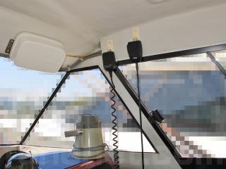 ◆船はフライブリッジ付きウォークアラウンドで釣りやすく、GPS魚探、オーディオ、無線機、電動アンカーウィンチ、オーニング、電動マリントイレなどの艤装が備わっています。