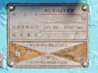 ◆エンジンはヤンマー6LY-UTZY(6気筒インタークーラー・ターボ付きディーゼルエンジン)です。検査手帳での連続定格出力は240PS/3000rpmとなっています。なお、取材時のエンジンアワーは約2688時間でした。エンジンアワーは今後もあまり増える事は無いと思われます。
