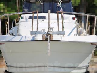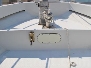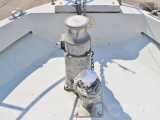 ◆フロントデッキにはバウスプリット24V・400Wの電動アンカーウインチ、電動リール電源が装備されています。またブリッジ両舷にはアウトリガーが付いています。