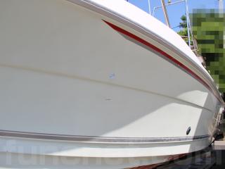 ◆右舷フロントデッキのガンネル上部(写真NO,37)と右舷船尾ガンネル(写真No,38)にやや目立つ傷がありますのでアップで撮影致しました、いずれもたちまち航行に影響がでるような傷ではないと思われます。