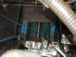エンジンは塗装がされていますのでお尋ねしましたところ、ブリッジのエンジンハッチをFRPで作っているときに雨が降ってしまい、FRPがエンジンの上に降りかかってしまったそうです。