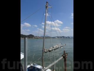 スパンカーが昨年の台風の時に、他船が当たって曲がってしまいましたので、取り外しての売却となります。