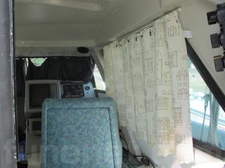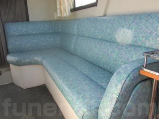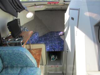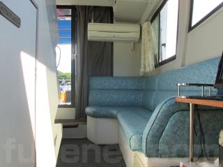 ゲストシートは、もともとは対面式だった様ですが、大人が横になれる位のソファーベッドタイプに改造してあります。