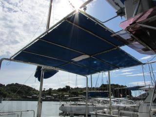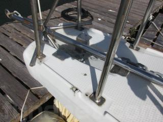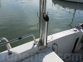バウからレールを中央付近まで設置していますので、前後デッキへのアクセスは安心感があります。
