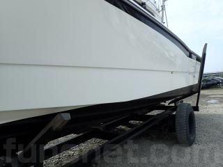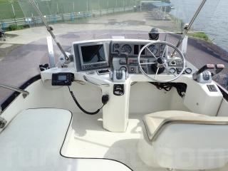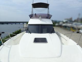 ご紹介致します船は、ヤマハ FC31EXT(平成6年進水)です。こちらの船は、セミウオークアラウンドデッキタイプで、ボート周りがすべてフィッシングスペースとなっており、釣りやデッキ間の移動もスムーズに行え、またキャビンも十分広く、家族や仲間で楽しくクルージングと1年中楽しめるヤマハの人気艇となっております。また、入門艇の方にもお勧めです。