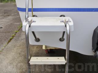 ◆オーナー様は「釣り」と「潜り」にも使われているようですので、アンカーウィンチ、アウトリガー、ロッドホルダー、GPS魚探+魚探、そして「潜り」に便利なロング・ラダーなどが装備されています。