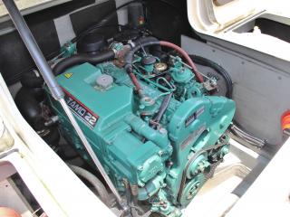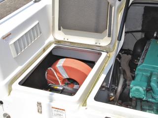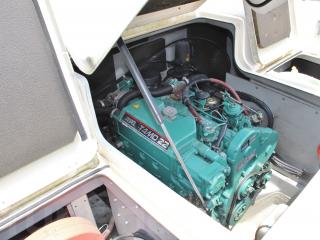 ◆エンジンはボルボペンタ製TAMD22(直列4気筒ターボチャージャー付ディーゼルエンジン)連続定格出力85PS/4360rpmを搭載しています。また、取材時のエンジンアワーは約970時間でした。これはあまり大きく増えることは無いと思われます。なお、ドライブはボルボペンタSX2です。なお、オーナー様によりますと最高速度は約25ノットとの事でした。通常18ノット程度で乗られているようで、感覚的には一日遊んで消費する燃料は12~13リッター程度との事です。(あくまでも参考ですが。)