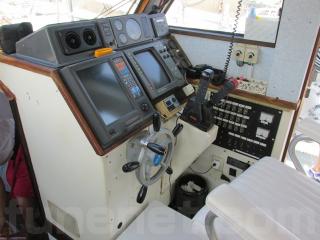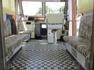 スピードは、最近スルーハルで振動子を取り付けたり、デッキを改築されたりしたので少し落ちたそうですが、それでも最高は26-27ノットは出るそうです。