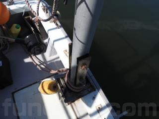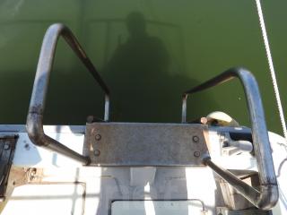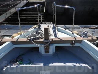 ◆デッキは硬く擦れも少なく良好です、バウにステンレス製のホースピットを取り付けています、手すりもぐらつきなく良好です。