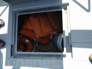 ◆ホースピットが有るので船首からの乗降がしやすく、係留時に重宝します。
