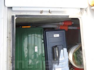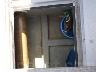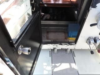 ◆艫デッキは物入れなど有ります、アルミ板で部屋を造りリアドアを付けていますがその下のハッチは開閉できるように隙間が有ります。
