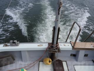 ◆フロントデッキには大型のイケスも有ります、2ステションで、スパンカー、オーニング等そなえています、小回りの効く使いやすい釣り船です。