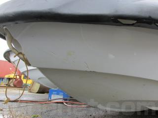 右舷側の船底のFRPを一か所シリコンで補修されていました。