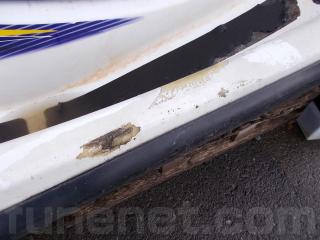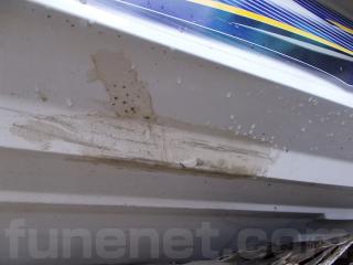 サイドデッキにFRPの傷や変色、補修痕もあります。