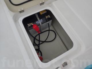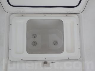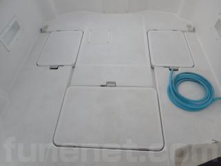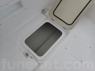 〇右スターンハッチは、メインスイッチやバッテリースペースとなっており、中央には容量の大きなイケスもあります。