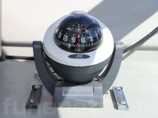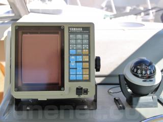 ◆ヘルムハンドルの前にはヤマハ製GPS魚探とコンパスが載っています。取材時にGPS魚探に電源が入る事は確認いたしました。