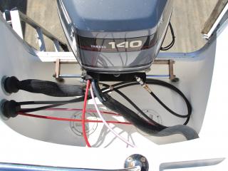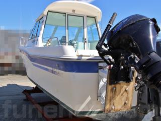 ◆船外機はヤマハ製の2サイクル140馬力船外機(140CETO 型式:6F3  V型4気筒)連続最大出力140PS/5500rpm)を搭載しています。また、取材時のエンジンアワーは約872時間でした。これはあまり大きく増えることは無いと思われます。なお、写真には補機としてトランサムにトーハツの8馬力船外機が載っている状態で写っていますが、この船外機とブラケットは取り外す予定です。※この船外機やブラケットがご入用方はご相談下さいませ。
