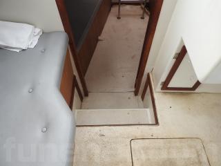 ◆デッキは硬く良好ですバウデッキの下全体が部屋です、広いスペースですので交通艇として使用されていました、レジャーボートとして使用すれば数人でくつろげれる空間となりそうです。