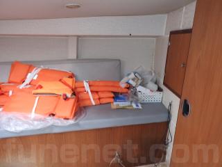 ◆キャビン内は広く左舷サイドにソファーが有ります、操舵席後ろにもシートがあります、バウバースも広く両サイドはソファーがあります、数名でくつろげる空間です。