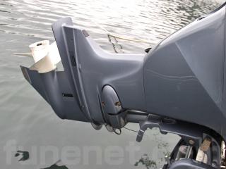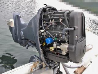 ◆この船外機は銘板からすると2010年10月製だと思われまが、オーナー様は2012年頃に使用時間が30時間程度でコンディションの良かったこの船外機を業者さんから中古で購入されて、載せ替えてもらったとの事でした。また、この船外機にはアワーメーターが取り付けられていませんので現在のエンジンアワーは不明です。あくまでも推定ですが400~600時間程度ではないかとの事でした。※あくまでも推定です。ご了承下さい。