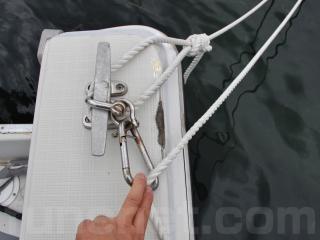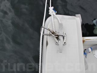 ◆アフトデッキ両側後端には係留ロープで擦れたようなゲルコートの剥げがあります。(写真NO,57~58)