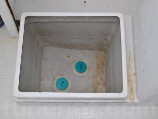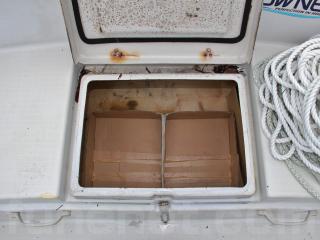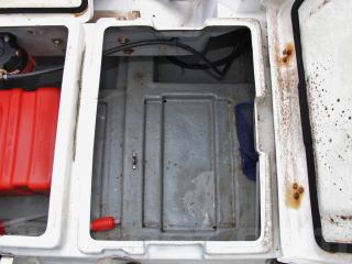 ◆キャプテン・シートは取り外し可能な物です。また、乗られる時以外は取り外されていらっしゃいます。シートの下はストレージになっています。また、シート左側はイケスになっています。また、イケスのスカッパーも新しい物に交換されていますので、しっかり閉まっていました。「スカッパ蓋廻し」も付属しています。