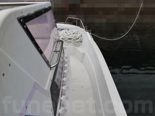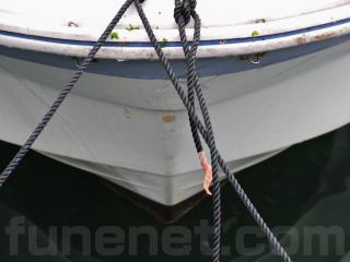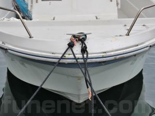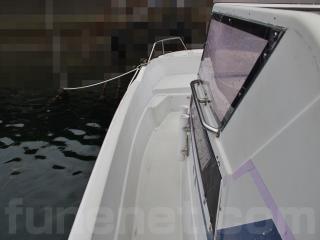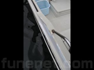 ◆艇は平成4年進水です。船体は船齢なりの経年劣化やロープの擦れによるゲルコートの剥げ、当て傷などはあるものの、たちまち航行に影響がありそうな大きな損傷は無いように見受けられました。