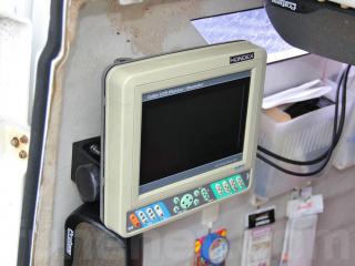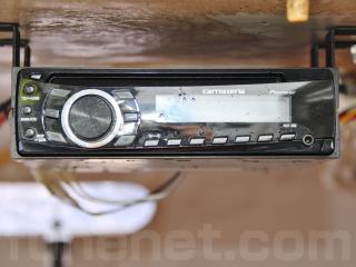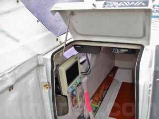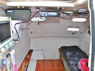 ◆キャビンスペース・ドアを開けるとGPS魚探「HONDEX PS-70GPⅡ」とオーディオ・デッキ「Pioneer carrozzeria DEH-360」が備わっています。また、スピーカーも付いています。
